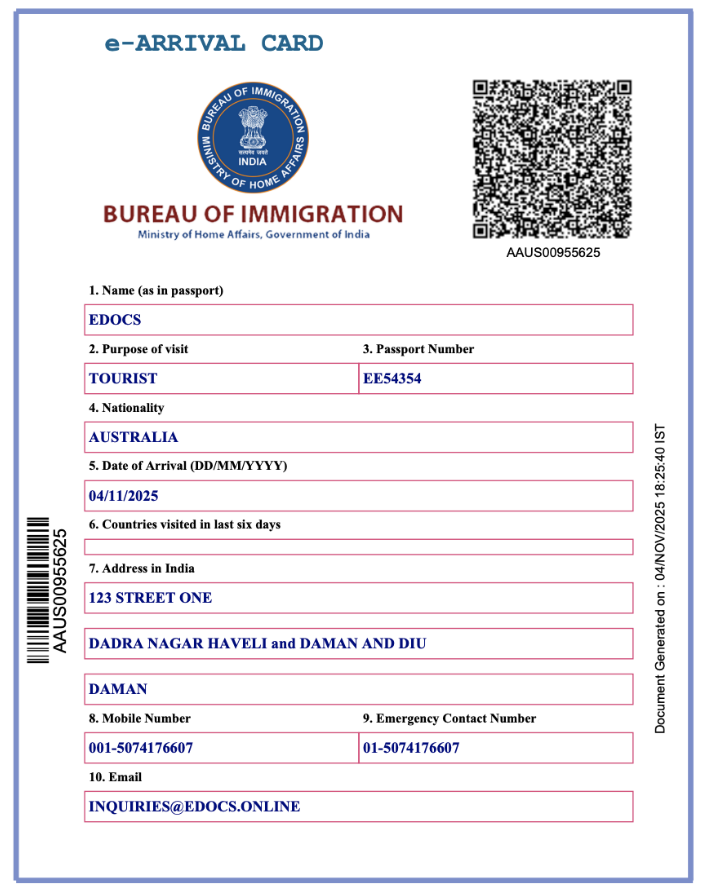 The India Arrival Card is a mandatory digital form required for all air travelers entering India.